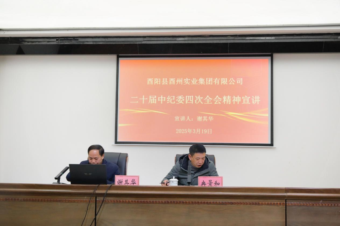 【3月20日訊 楊宜霖】 為深入學習宣傳貫徹二十屆中紀委四次全會精神,教育引導集團全體黨員干部深入理解、全面把握其精神實質和核心要義。3月19日上午,集團按照縣紀委統一部署,舉行二十屆中紀委四次全會宣講?h紀委派駐財政局紀檢監察組組長謝其華作專題宣講,集團領導班子、中層副職以上干部、全體黨員參加會議。