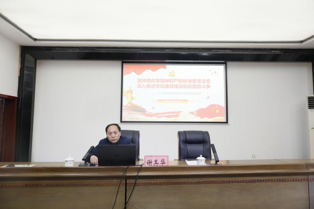 會上,縣紀委派駐財政局紀檢監察組組長謝其華以《堅持用改革精神和嚴的標準管黨治黨 深入推進黨風廉政建設和反腐敗斗爭》為題,緊扣二十屆中紀委四次全會精神,從深刻領會習近平總書記在全會上的重要講話精神、系統學習李希同志對縱深推進正風肅紀反腐所作部署、認真讀透落實中央紀委四次全會精神的相關要求3個方面,為全體干部職工開展專題宣講。宣講全面系統、內涵豐富、脈絡清晰、重點突出,既有理論高度,又有實踐深度,對于黨員干部學深悟透、對標落實全會各項決策部署具有很強的指導意義。